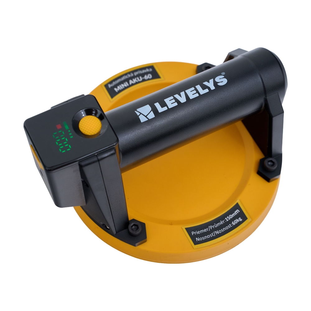 Kombinuje vysokú saciu silu, elektronické riadenie tlaku a inteligentné bezpečnostné funkcie, čím výrazne zvyšuje efektivitu aj bezpečnosť práce. Prísavka MINI AKU-60 disponuje vstavaným senzorom, ktorý dokáže automaticky rozpoznať úroveň tlaku. Pri strate podtlaku senzor automaticky zapne prisávanie, čím sa udrží absorpčná sila. Automatická prísavka MINI AKU-60 od LEVELYS® dokáže byť v nepretržitej prevádzke až 12 hodín (v prípade plného nabitia).